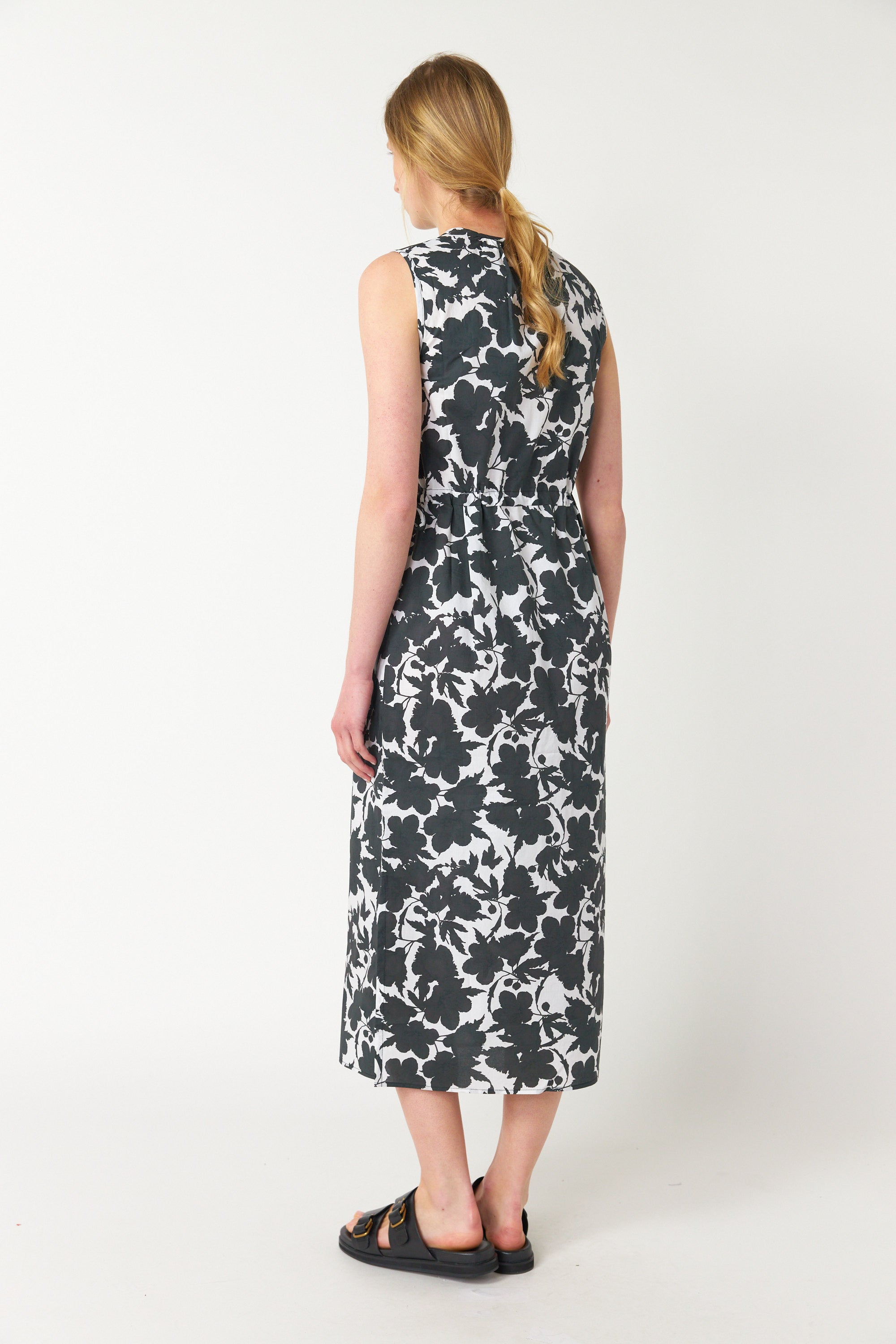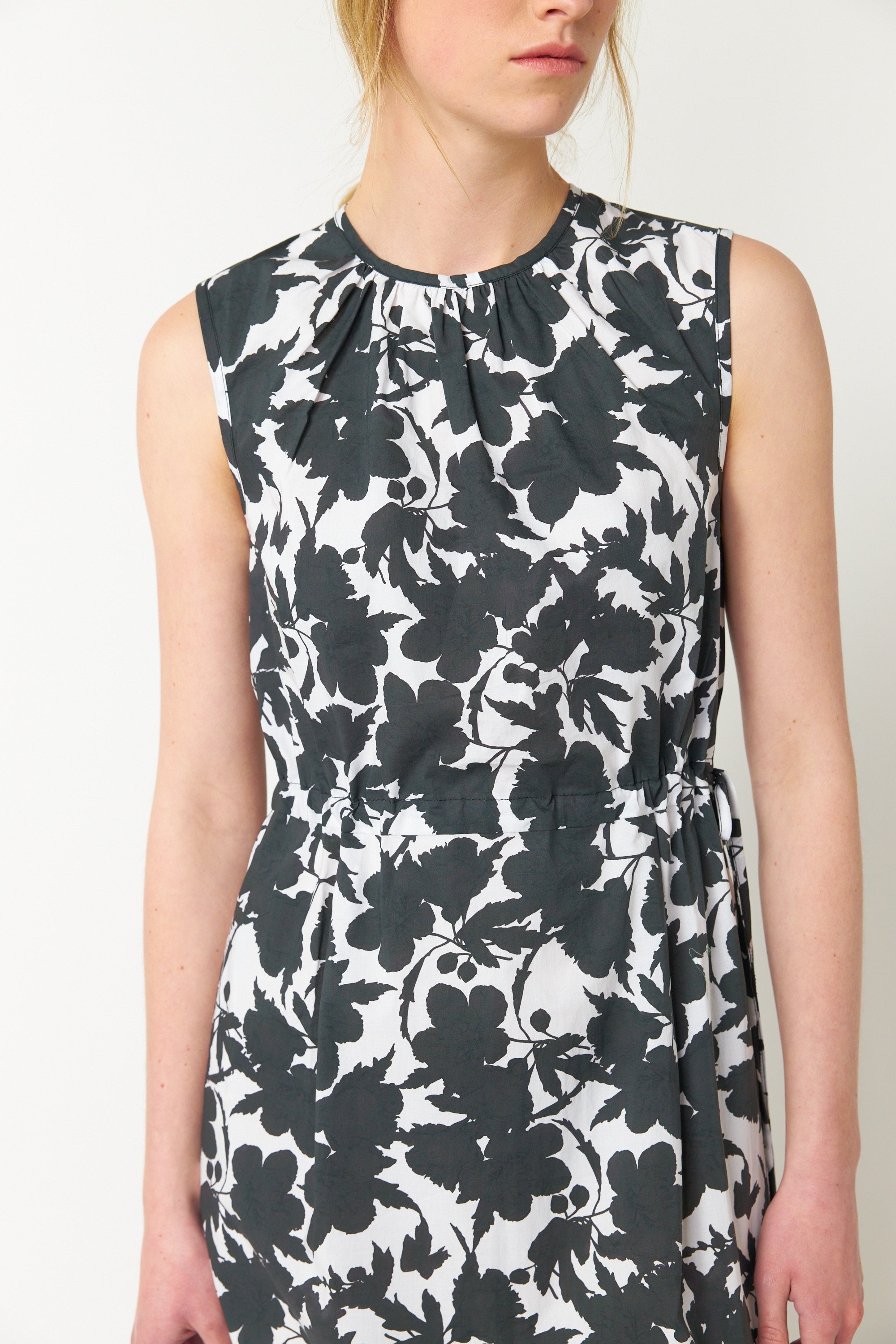 Our Wild rose dress looks great layered up for the cold but will transform into a sundress come summer. It is semi fitted and finishes mid calf with charming side splits in the skirt. There are soft gathers at the neck and an adjustable drawstring at the waist so its effortlessly comfortable. Wear with our underneath on colder days.